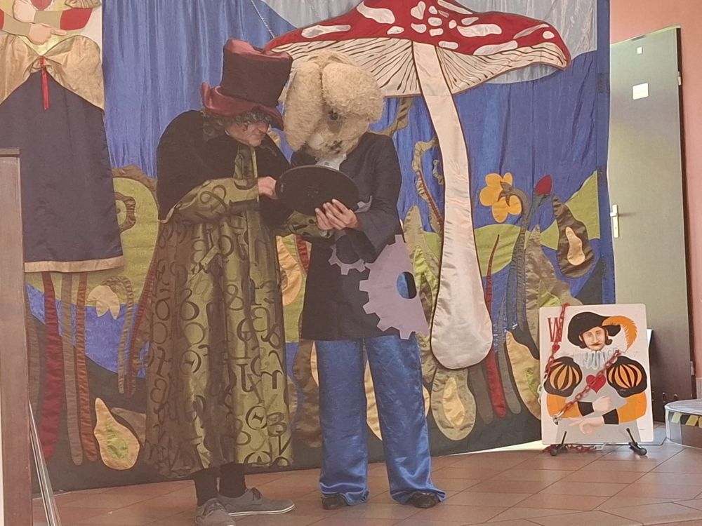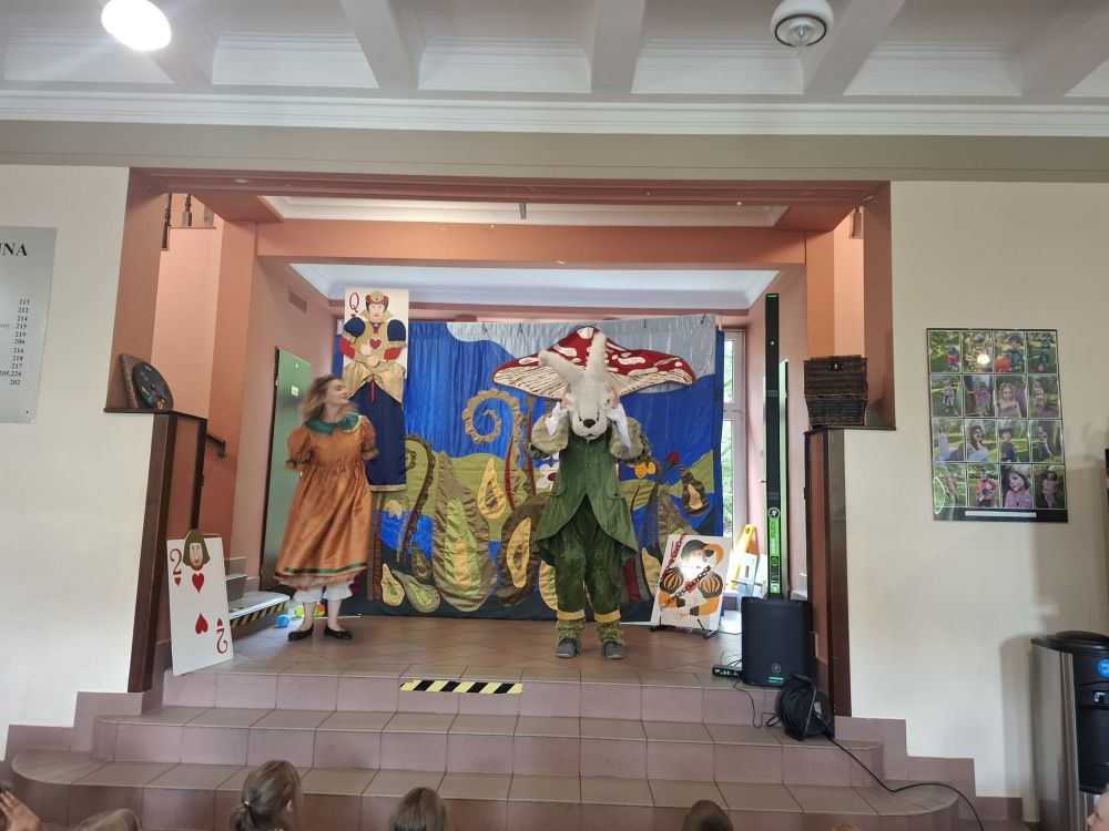 W dniu 2.09.2025 r. w naszej placówce gościliśmy aktorów z teatru Prekursor Artystyczny z Krakowa. Było to niezwykłe wydarzenie, które pozwoliło nam na chwilę przenieść się w świat sztuki, wyobraźni i emocji. Aktorzy zaprezentowali w przystępny i ciekawy sposób spektakl pt. „Zaczarowany świat Alicji”. Dzięki barwnym postaciom, scenografii oraz pełnej humoru grze aktorskiej uczniowie mogli dobrze się bawić. Spotkanie z teatrem to nie tylko rozrywka, ale i nauka- rozwija wrażliwość, uczy przeżywania sztuki na żywo oraz pokazuje, że kultura może być inspiracją w codziennym życiu. Serdecznie dziękujemy artystom za przyjazd i wspaniały występ, który został nagrodzony gromkimi brawami.
