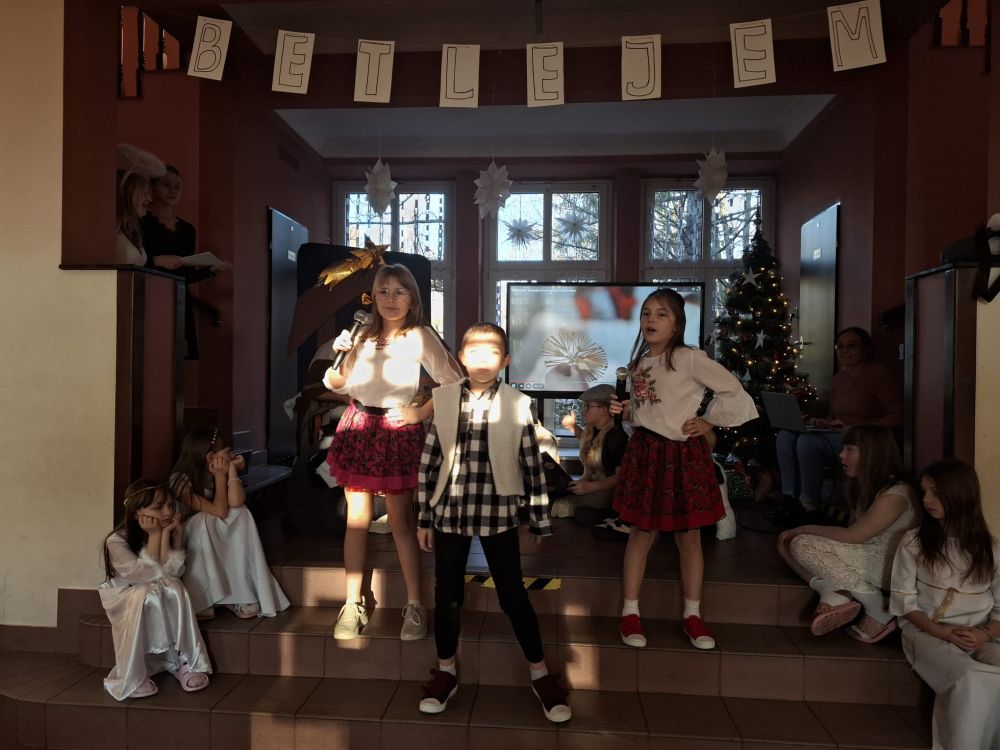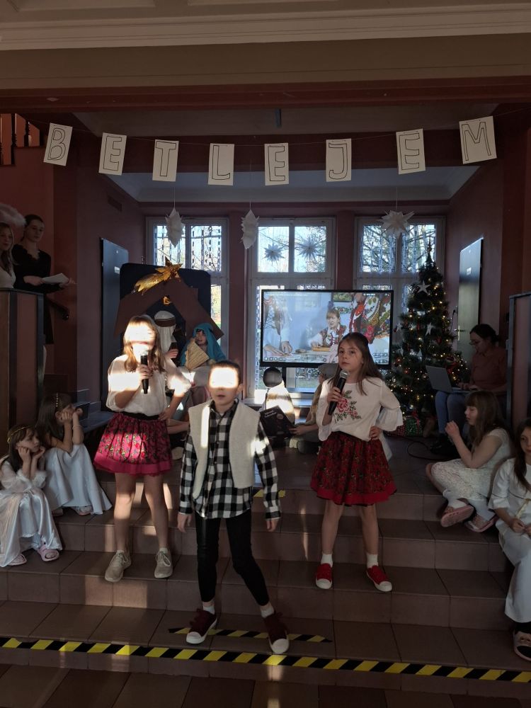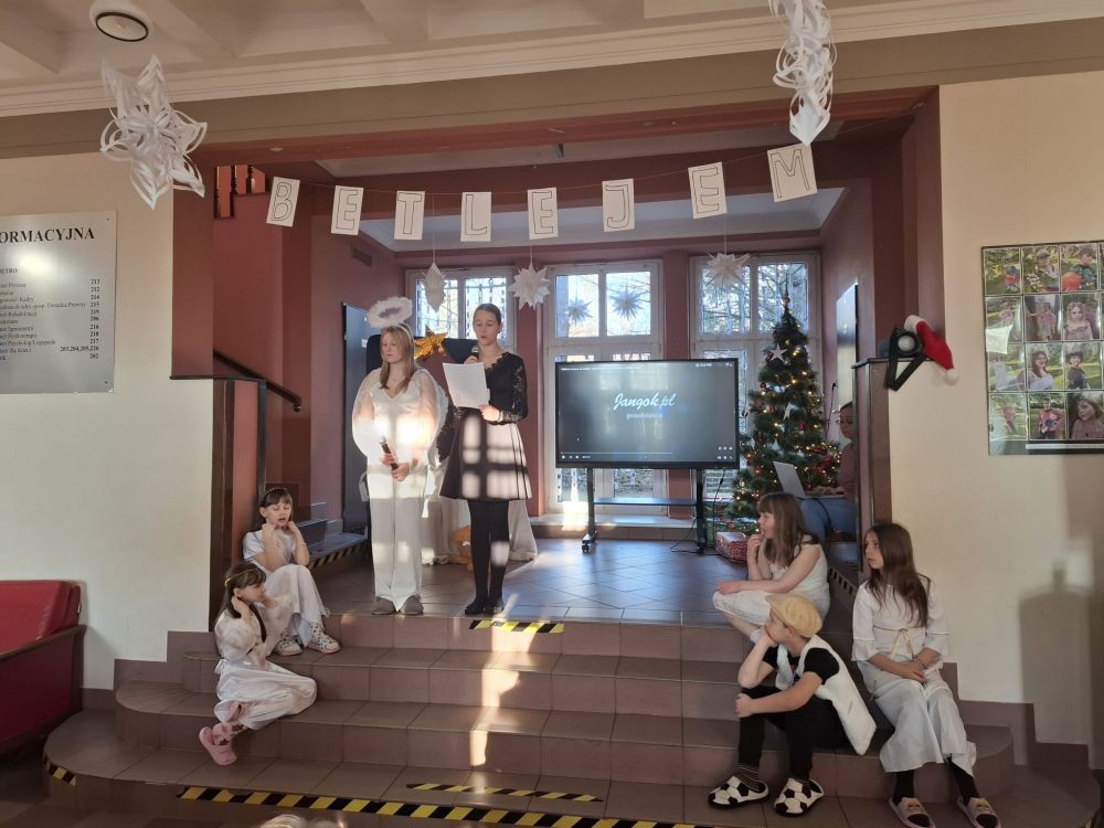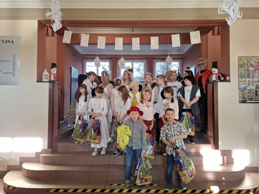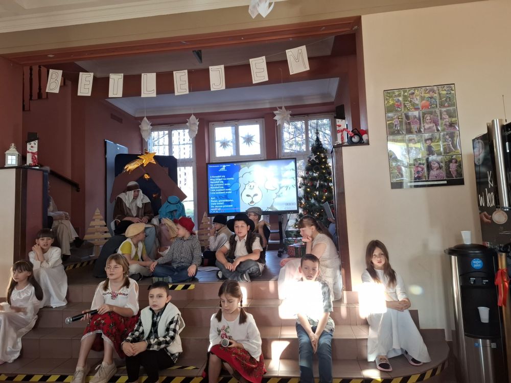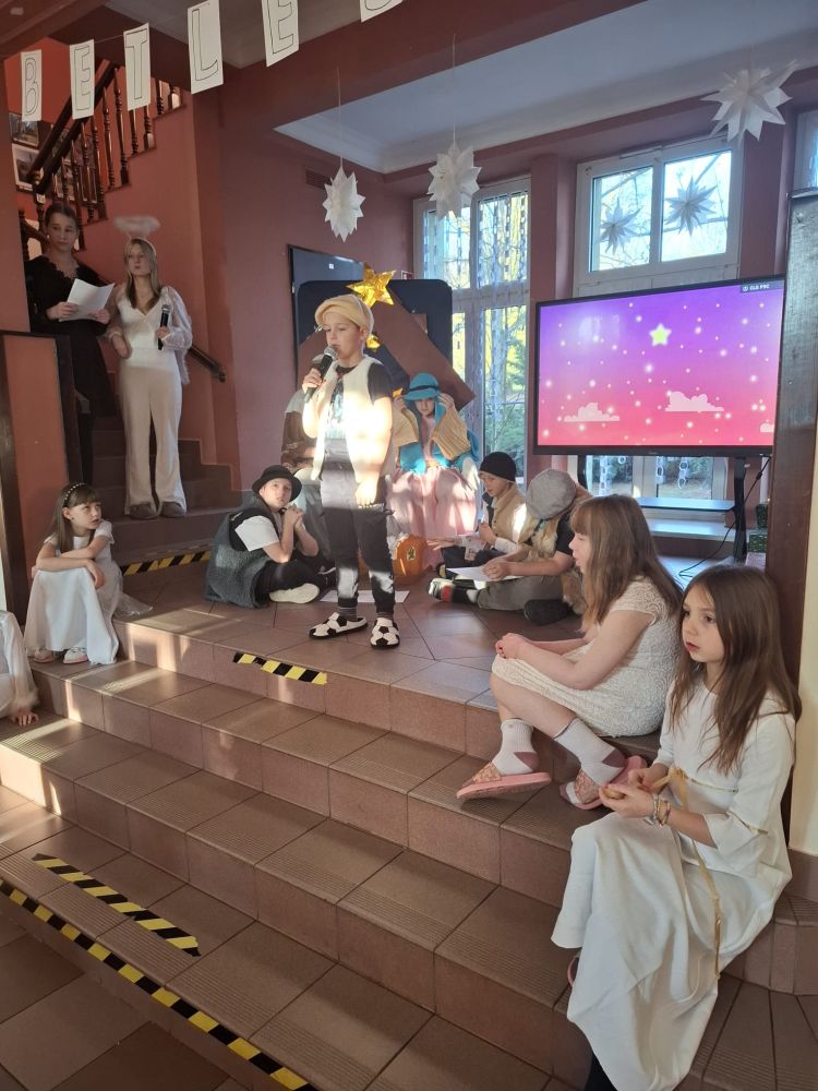 19 grudnia w naszej szkole zostały wystawione jasełka bożonarodzeniowe. Dzieci z wielkim zaangażowaniem zaprezentowały historię narodzin Jezusa, przypominając o istocie Świąt Bożego Narodzenia- miłości, radości i pokoju. Młodzi aktorzy wystąpili w pięknych strojach aniołów, pasterzy, Maryi i Józefa. Występ wzbogacony był o świąteczne piosenki i kolędy, które śpiewali młodzi artyści wraz z całą publicznością. Każde dziecko włożyło w swoją rolę wiele serca i pracy, co zostało nagrodzone gromkimi brawami. Jasełka były nie tylko artystycznym wydarzeniem, ale również wspaniałą okazją do wspólnego przeżywania świątecznych tradycji, integracji społeczności szkolnej oraz budowania poczucia wspólnoty. Dziękujemy wszystkim dzieciom i nauczycielom za zaangażowanie oraz pomoc przy przygotowaniu tego pięknego przedstawienia.