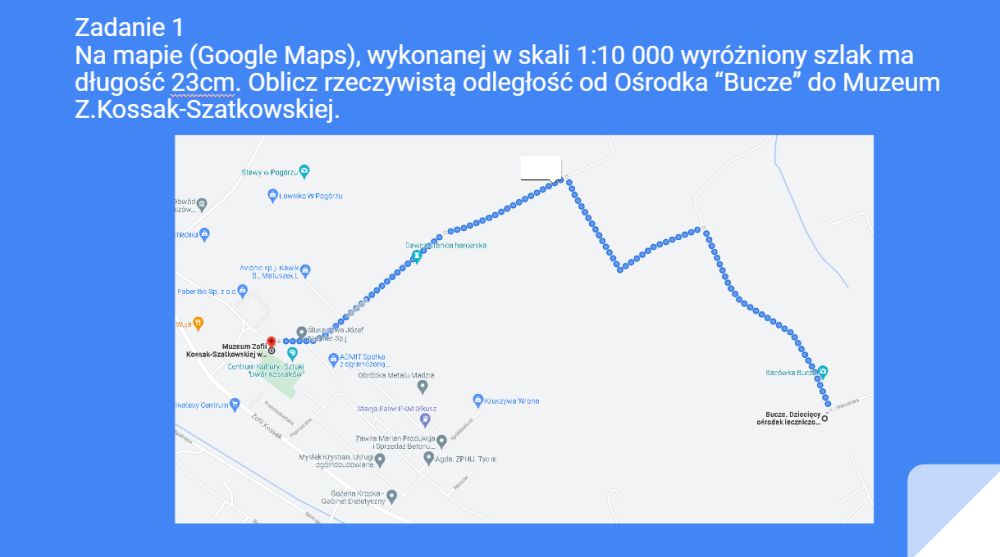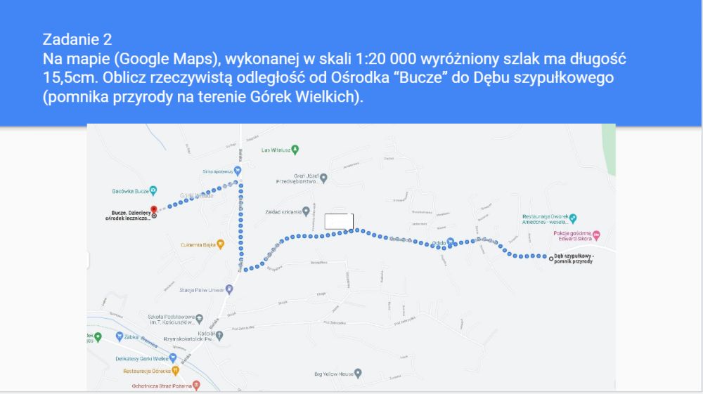 Na lekcjach matematyki uczniowie klasy siódmej wykorzystali poznaną wiedzę w praktyce. Na podstawie podanych informacji obliczali długości tras wycieczkowych na terenie Górek Wielkich.