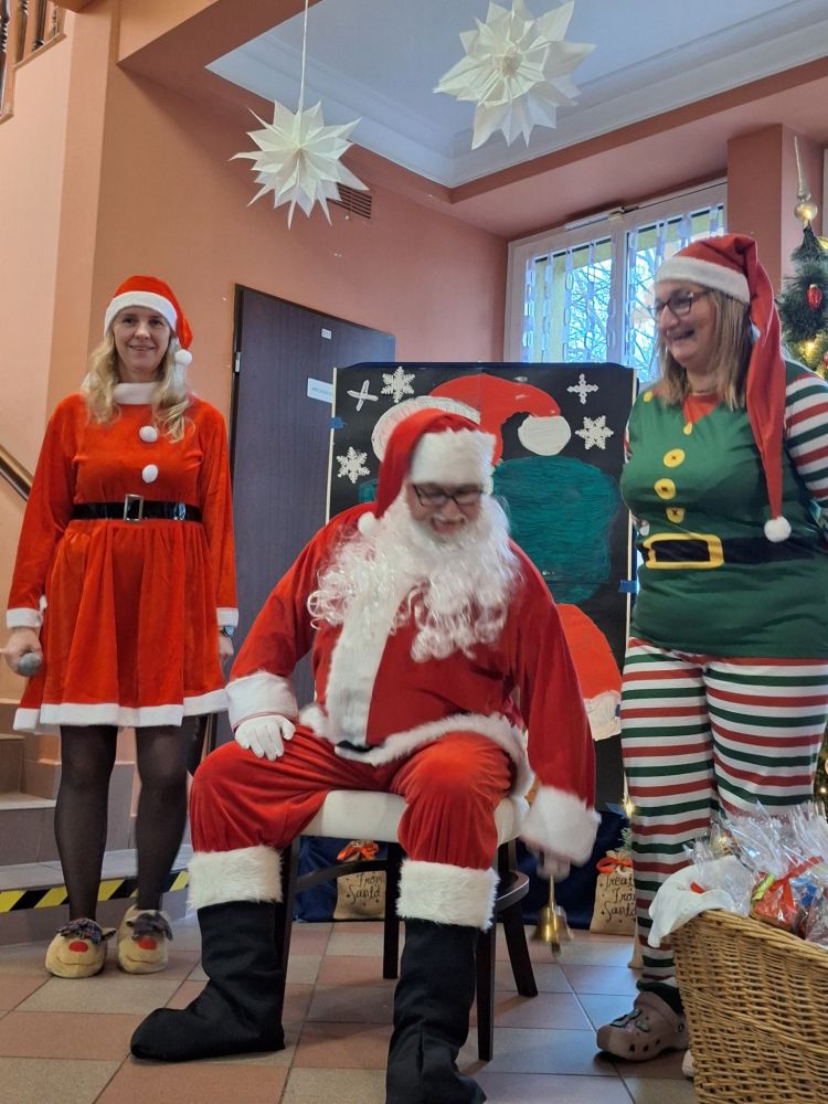 5 grudnia w naszej placówce panowała wyjątkowa, świąteczna atmosfera. Obchodziliśmy Mikołajki- dzień pełen radości, uśmiechów i miłych niespodzianek. Od samego rana dzieci z niecierpliwością wypatrywały wyjątkowego gościa, jakim był święty Mikołaj. Dlatego z ogromnym entuzjazmem go powitały, a w zamian za piękne uśmiechy otrzymały drobne upominki. Spotkanie z Mikołajem było doskonałą okazją do kształtowania postaw życzliwości, dzielenia się radością oraz budowania pozytywnych relacji w grupie. Ten dzień na długo pozostanie w naszej pamięci jako czas pełen ciepła, magii i dziecięcej radości.