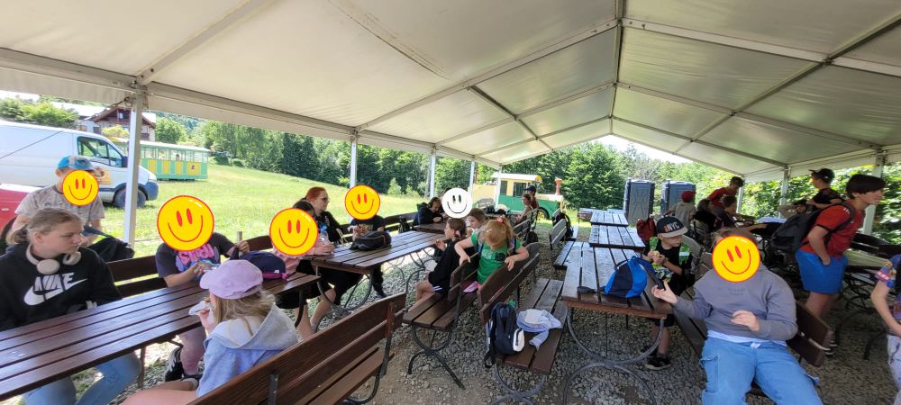 Do położonej na wzgórzu atrakcji dotarlismy niesamowitym pojazdem - ciuchcią. Na miejscu oprócz pięknych widoków, które zrobiły ogromne wrażenie, czekało na nas wiele atrakcji: karmiliśmy zwierzęta domowe - króliki, kozy, krowy, konie, kury, uczestniczyliśmy w warsztatach plastycznych oraz mieliśmy możliwość dojenia krowy. Takie bliskie spotkanie z naturą to niesamowite doświadczenie.